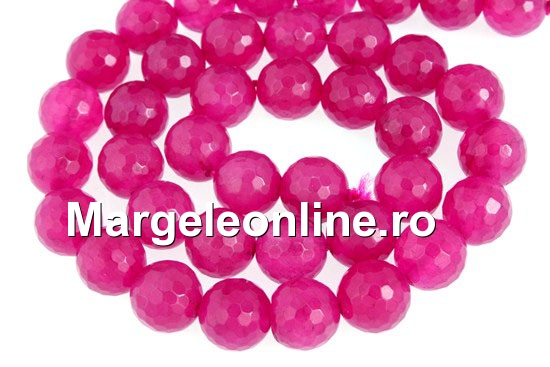 Margele jad, culoare: roz, forma: rotund fatetat, marime: 6.5mm, lungime sirag: 39cm. Pretul este pentru un sirag.