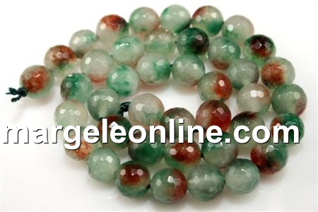 Margele jad, culoare predominant rosu grena si verde, forma: rotund, marime: 10mm, lungime sirag: 40cm. Pretul este pentru un sirag.