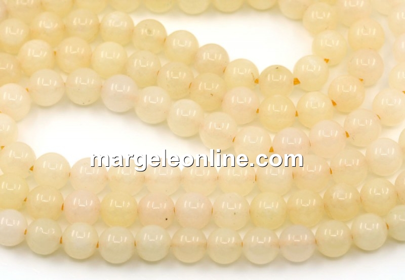 Margele Jad, rotund, galben pastel, 6.5mm
