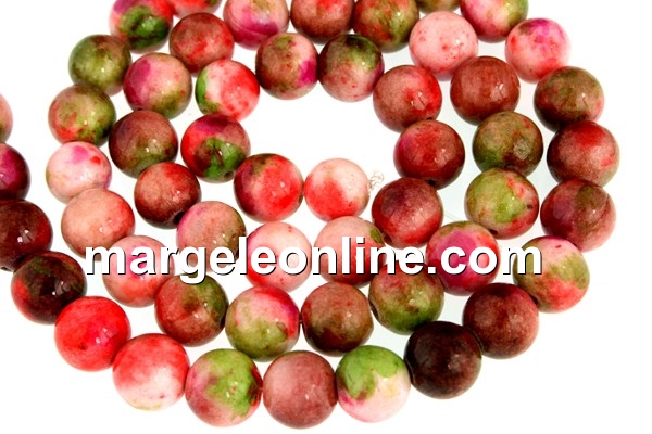 Margele jad vopsit, culoare: multicolor, forma: rotund, marime: 8.5mm, lungime sirag: 40cm. Pretul este pentru un sirag.