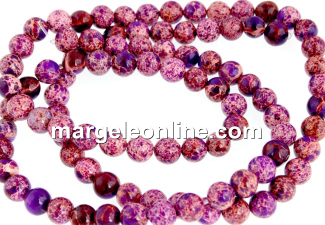 Margele jasp imperial, forma: rotund, marime: 4.5mm, culoare: mov fucsia, lungime sirag: 40cm. Pretul se refera la 1 sirag de 40cm cu 93-96 margele.