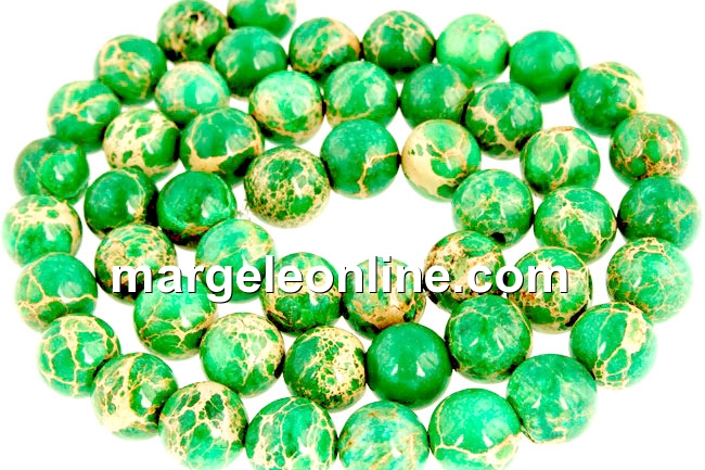 Margele jasp imperial, forma: rotund, marime: 8mm, culoare: verde, lungime sirag: 40cm. Pretul se refera la 1 sirag.
