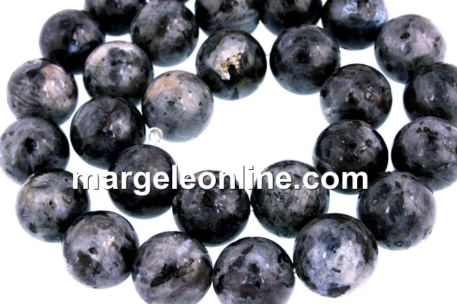 Margele larvikit, cunoscut sub numele de labradorit allbastru, culoare: nuante de gri si negru cu reflexii albastre,forma: rotund, marime: 12.5mm, lungime sirag: 35cm. Pretul este pentru un sirag.
