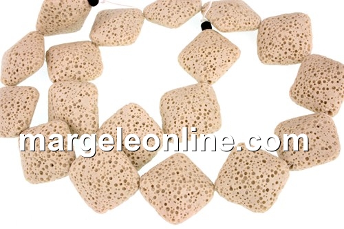 Margele lava naturala, forma: romb, culoare: nisipiu, marime: 23.5x23.5x10mm. Pretul se refera la 18 margele.