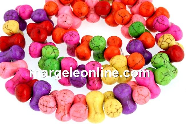 Margele magnezit multicolor vopsit, forma: clepsidra, marime: 14x8mm, lungime sirag: 40cm. Pretul este pentru un sirag.