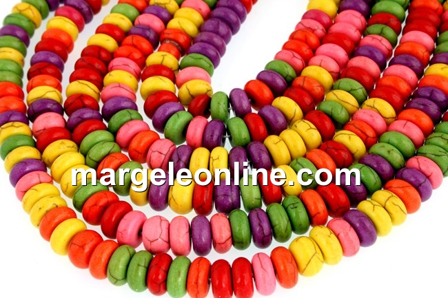 Margele magnezit multicolor vopsit, forma: rondela, marime: 8x4-5mm, lungime sirag: 40cm. Pretul este pentru un sirag cu cu 104-108 margele.