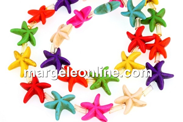 Margele magnezit multicolor, forma: stea de mare, marime: 14.5x14mm, lungime sirag: 38-39cm. Pretul este pentru un sirag.