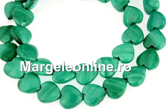 Margele malachit natural, forma: inima, marime: 10x10x4.5mm, lungime sirag: 39cm. Pretul este pentru un sirag.