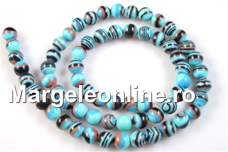 Margele malachit turcoaz-negru, sintetic, forma: rotund, marime: 6mm, lungime sirag: 40cm. Pretul este pentru un sirag.