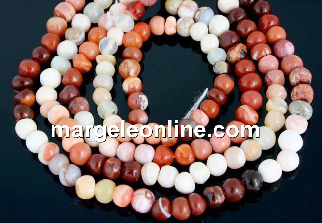 Margele opal de foc, rotund neregulat, marime: 4-5mm. Pretul este pentru un sirag cu de 17cm lungime.