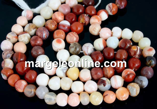 Margele opal de foc, rotund neregulat, marime: 6-6.5mm. Pretul este pentru un sirag cu de 17cm lungime.