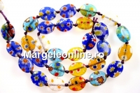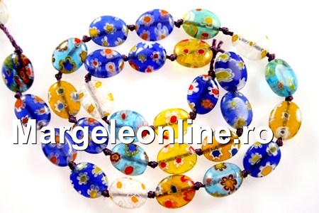 Margele sticla millefiori, forma: oval, marime: 10x8mm, multicolor. Pretul se refera la 30 margele.