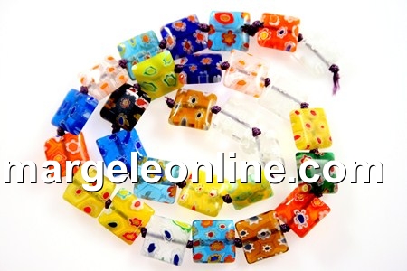 Margele sticla millefiori, forma: patrat, marime: 18x12mm, multicolor. Pretul se refera la 28 margele.
