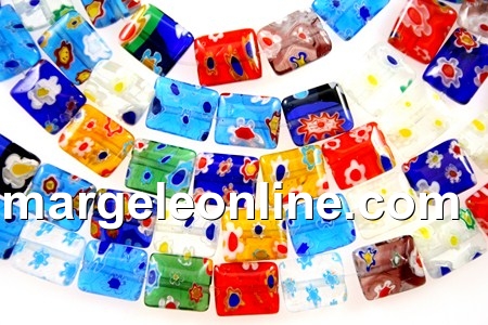 Margele sticla millefiori, forma: pernuta, marime: 10x8mm, multicolor. Pretul se refera la 1 sirag fara incuietoare de 40cm cu aproximativ 40 margele.