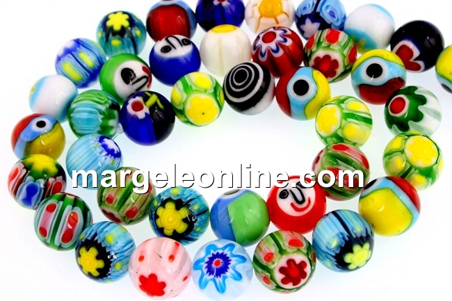 Margele sticla Millefiori, culoare: mix multicolor, dimensiune: 10mm, forma: rotund. Pretul se refera la 1 sirag de 40cm.