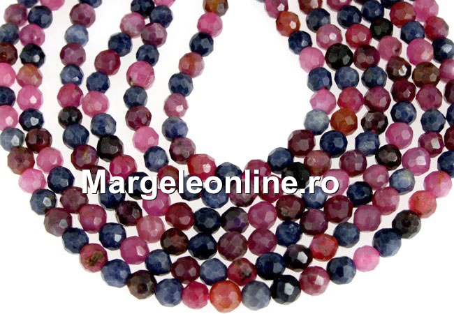 Margele mix safire si rubine naturale , forma: rotund fatetat, marime: 4mm. Pretul este pentru 1 sirag de 39-40cm.