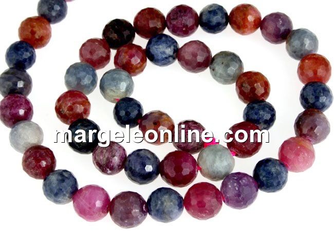 Margele mix safire si rubine naturale , forma: rotund fatetat, marime: 8mm. Pretul este pentru 1 sirag de 38 cm.