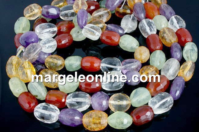 Margele citrin, ametist, cuart, carneol, prehnit, forma: tub neregulat fatetat, marime: 12-14x9-10mm. Pretul este pentru un sirag de 39-40cm.