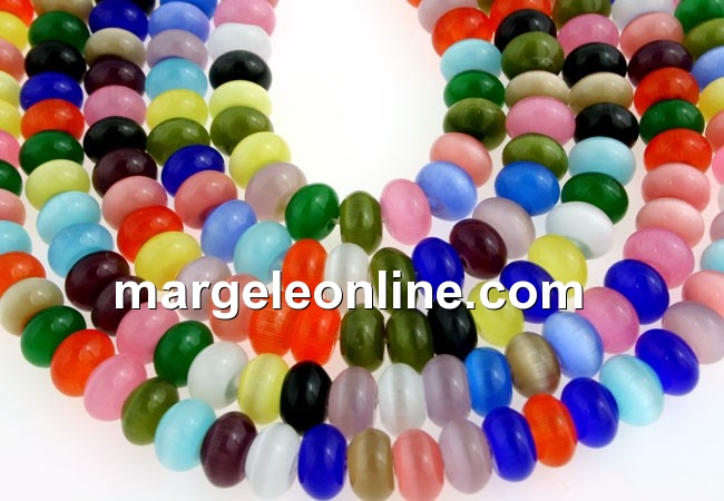 Margele ochi de pisica, rondele, multicolor, 8x5mm