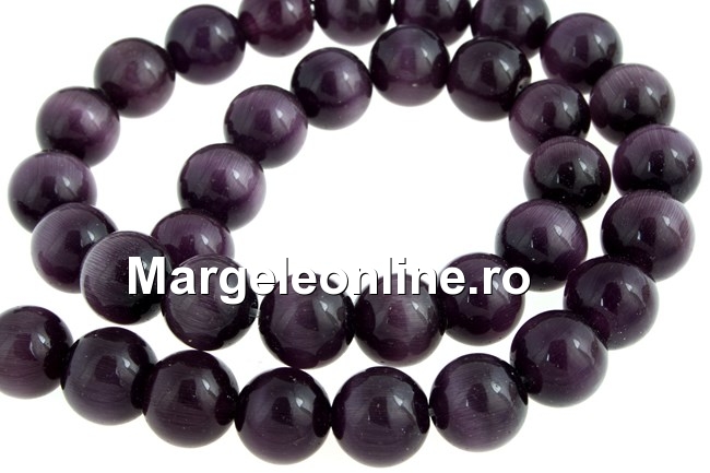 Margele sticla ochi de pisica , mov, dimensiune: 10mm. Pretul se refera la un sirag de 37.5-38cm cu 40 margele.