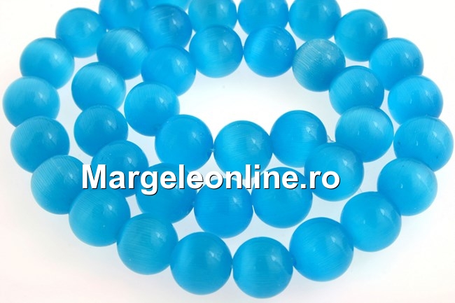 Margele sticla ochi de pisica , turcoaz, dimensiune: 9.7mm. Pretul se refera la un sirag cu 40 margele.