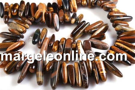 Margele ochi de tigru maro, forma: stick, marime: 18x5-21x7mm, lungime sirag: 40cm. Pretul este pentru un sirag.