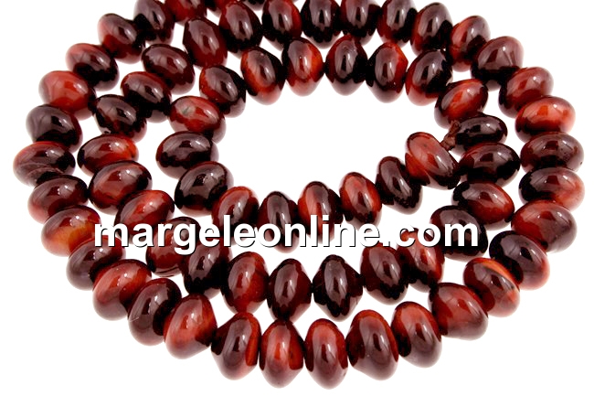 Margele ochi de tigru rosu, forma: rondela, marime: 8.5x5mm, lungime sirag: 40cm. Pretul este pentru 1 sirag.