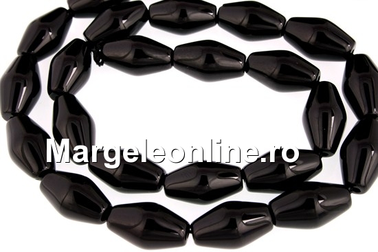 Margele onix negru, forma: biconic, marime: 14.5x8.5mm, lungime sirag: 39.5cm. Pretul este pentru un sirag cu cu 28 margele.