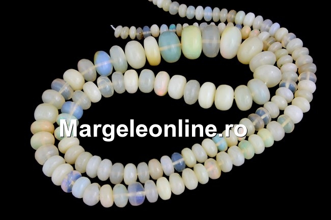 Margele opal natural ivory translucent cu irizatii, rondele, 3.5-8mm
