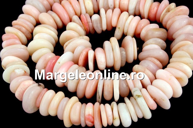 Margele opal roz natural, prezinta incluziuni, forma: disc, marime: 10-14x2-4mm, lungime sirag: 40cm. Pretul este pentru un sirag.