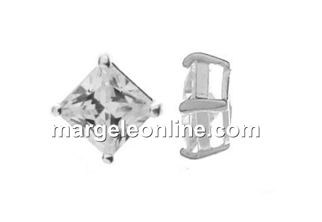 Margele patrat cu cristal, argint 925, 7.5mm - x1