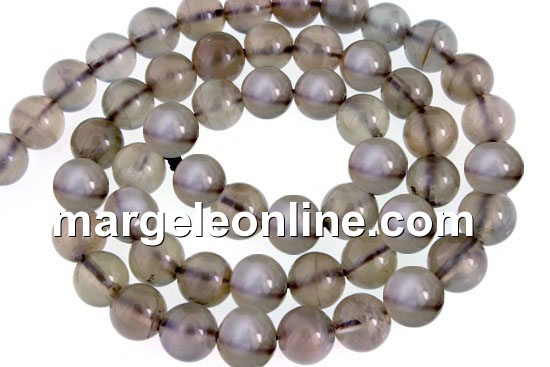 Margele piatra lunii naturala argintie, forma: rotund, marime: 8mm. Pretul se refera la 1 sirag de 39-40cm.