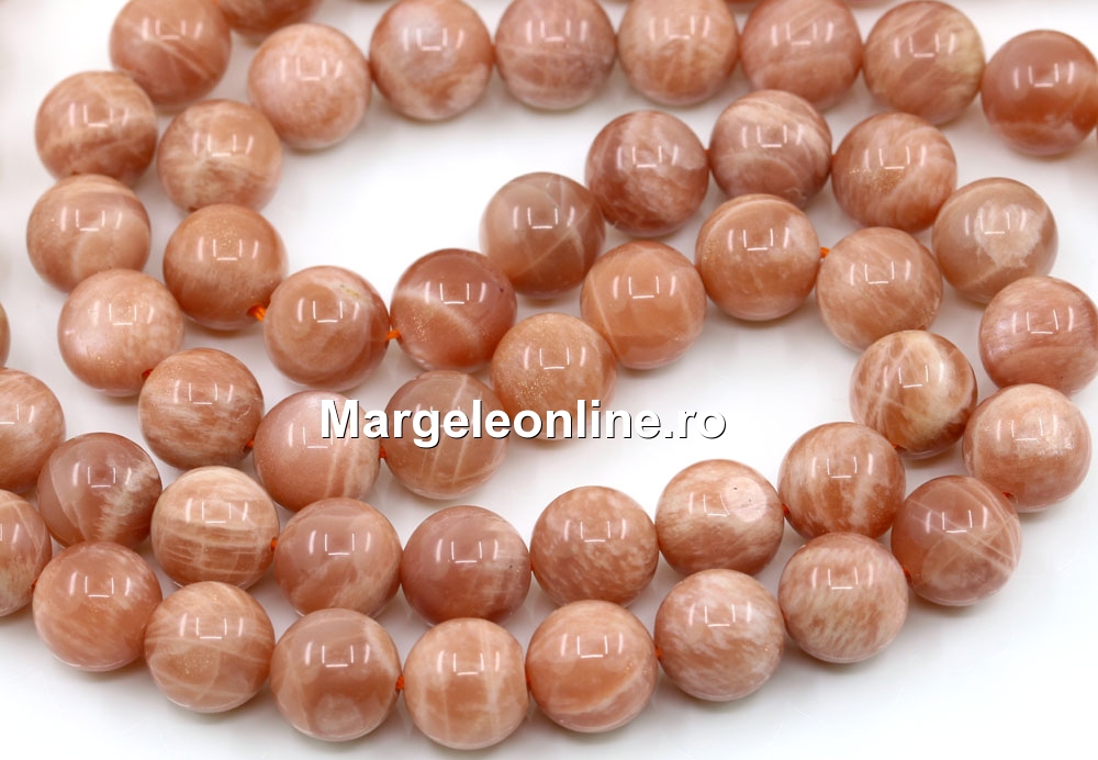 Margele piatra lunii naturala, forma: rotund, marime: 10mm, lungime sirag: 40cm. Pretul este pentru un sirag fara sistem de inchidere.