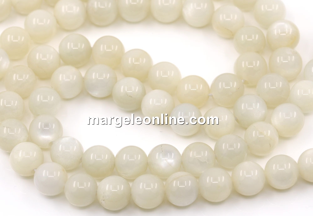 Margele piatra lunii naturala, forma: rotund, marime: 8.5mm, lungime sirag: 40cm. Pretul este pentru un sirag fara sistem de inchidere.