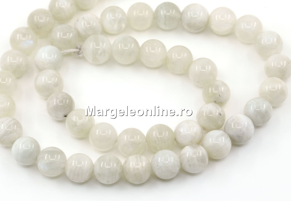 Margele piatra lunii naturala, forma: rotund, marime: 8mm, lungime sirag: 40cm. Pretul este pentru un sirag fara sistem de inchidere.