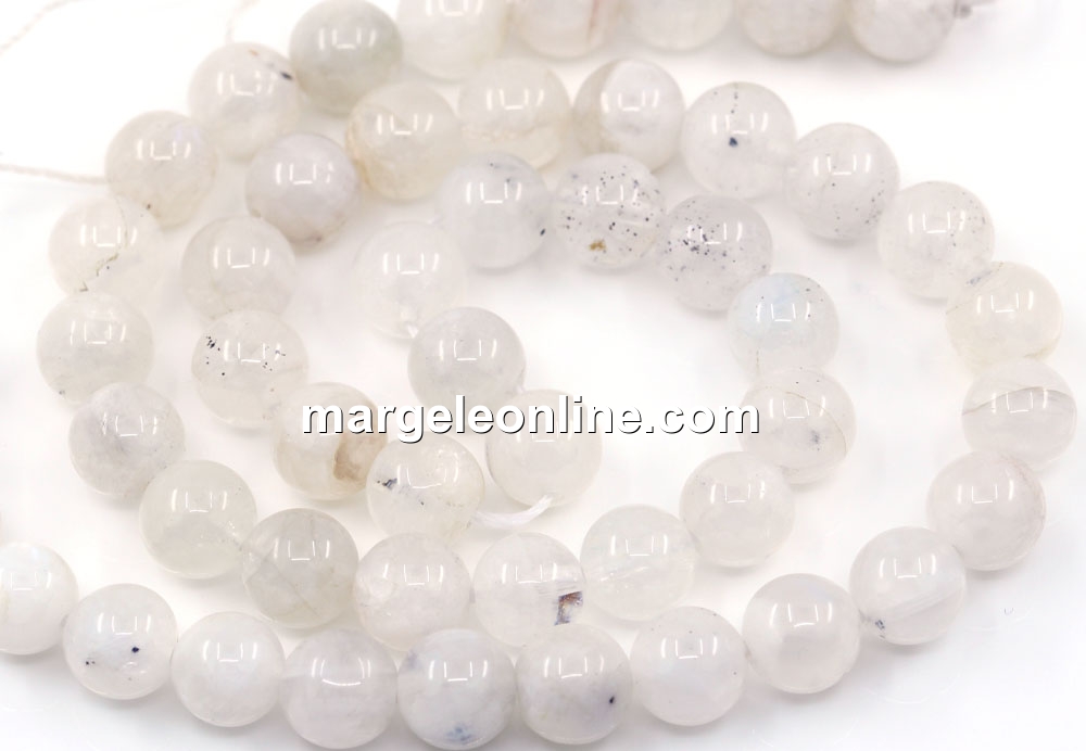 Margele piatra lunii naturala, forma: rotund, marime: 8mm, lungime sirag: 40cm. Pretul este pentru un sirag fara sistem de inchidere.