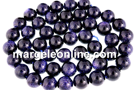 Margele piatra soarelui albastru, forma: rotund, marime: 8-8.5mm. Pretul se refera la 1 sirag de 38-39cm.