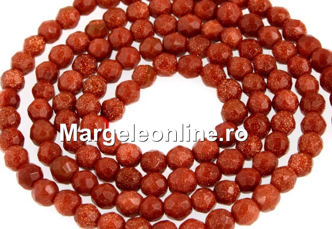Margele piatra soarelui maro, forma: rotund fatetat, marime: 3mm. Pretul se refera la 1 sirag de 38 cm.
