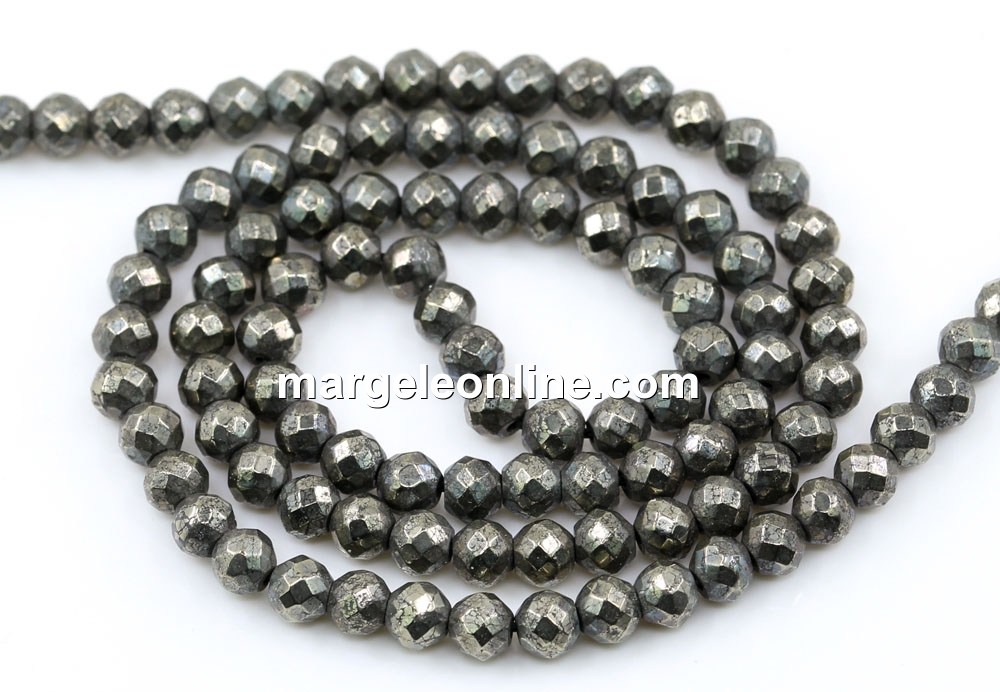 Margele Pirita naturala, rotund fatetat, 4mm