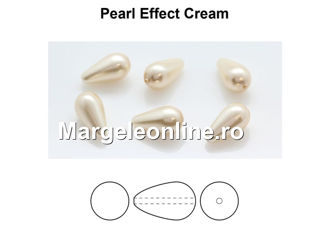 Margele Preciosa perle picatura, cream, 10x6mm - x2
