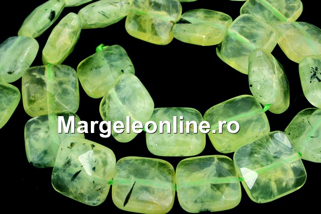 Margele prehnit natural, forma: patrat fatetat, marime: 14.5x14.5x6mm. Pretul se refera la un sirag de 40 cm.