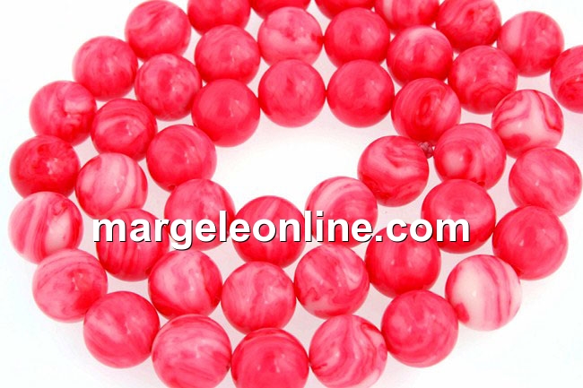 Margele rasina sintetica, culoare: imitatie de rodocrozit, forma: rotund, marime: 8mm. Pretul este pentru un sirag cu de 39-40 cm.