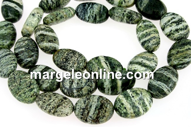 Margele serpentinit argintiu, forma: oval plat, marime: 14.5x10mm. Pretul este pentru un sirag de 40cm.