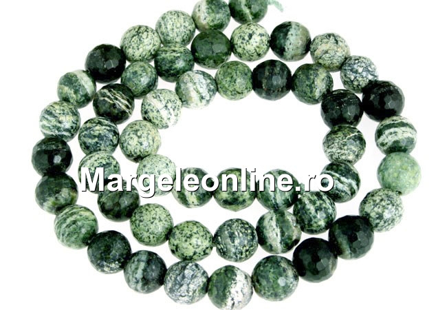 Margele serpentinit argintiu, forma: rotund fatetat, marime: 8mm. Pretul este pentru un sirag de 39cm.