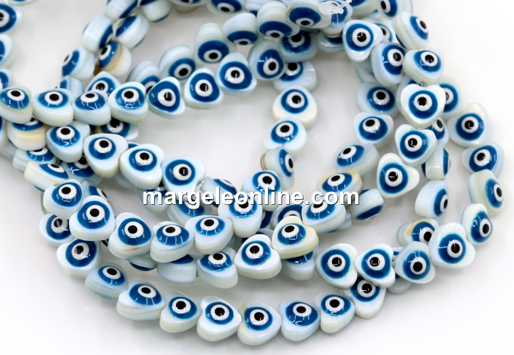 Margele sidef Evil eye, inima, 7mm