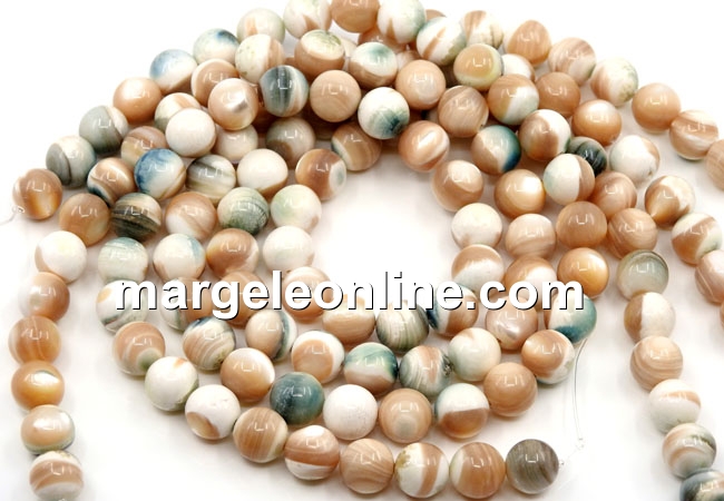 Margele sidef marin natural, crem-ivory, rotund, 9.5mm