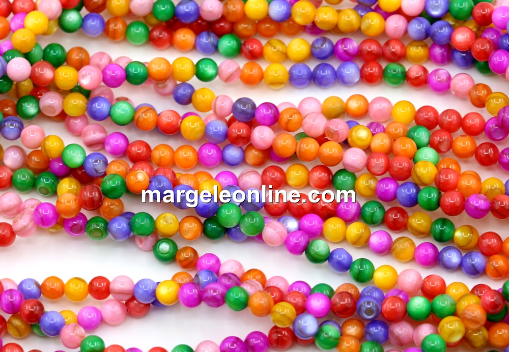 Margele sidef multicolor, rotund, 4mm
