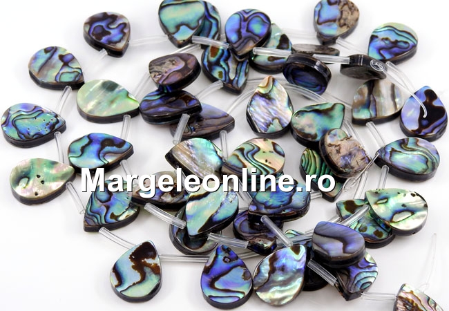 Margele sidef natural din scoica Paua, dimensiune: 18x13.5mm. Pretul se refera la 1 sirag de 37cm cu cca 22 elemente.