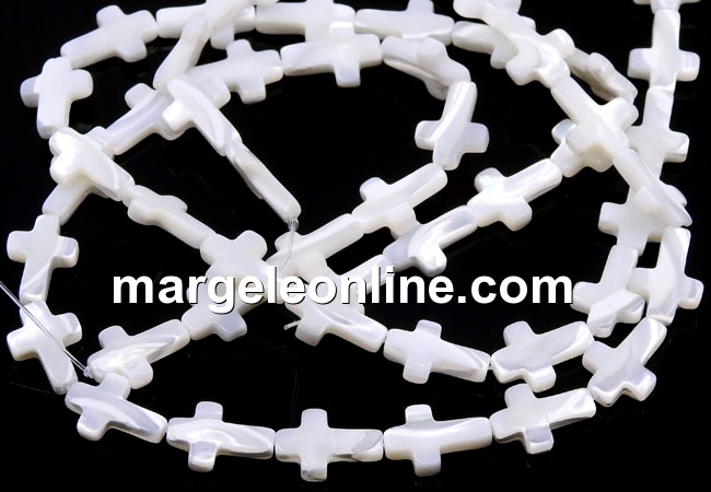 Margele sidef natural alb, cruce, 13.5x9.5mm