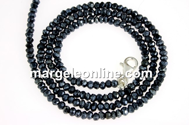 Margele spinel negru natural cu reflexii hematit , forma: rondele fatetate , marime: 3x1.8-2.3mm. Pretul se refera la 1 sirag de 43cm prevazut cu incuietoare din argint 925.